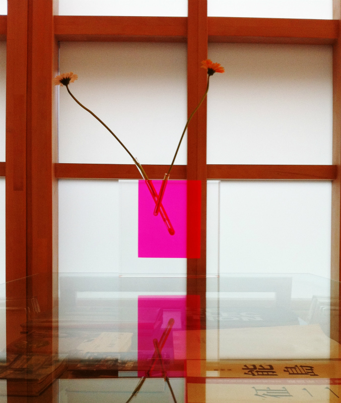 今年の春にこの展示会を見たばかりだったので、余計に目に止まりました。ガラスのテーブルや光るアクリルの壁とよく合っていたと思います。