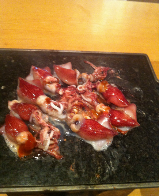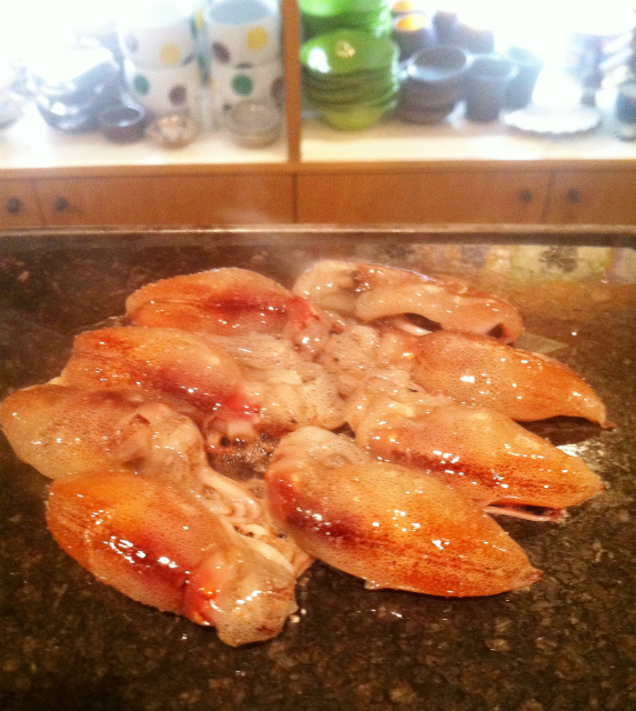 熱した陶板にホタルイカを乗せると・・