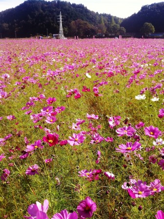 まだ作ってなかったけど、いつもはコスモス畑の中を歩けるように道が作られます。両側をコスモスに挟まれて気持ちよく歩けますよ。 どうぞ見に来てください。