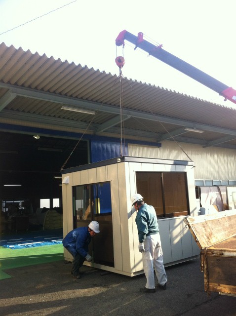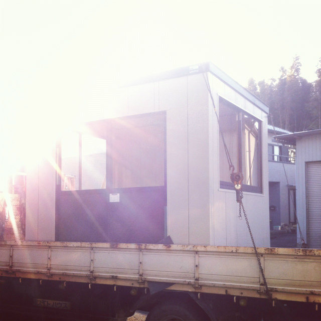 土木現場でよく見るスーパーハウ・・・いやスーパーブース到着。後光が射してます。