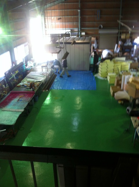 目に入れば痛いし、静電気で体中にまとわり付くし、その粉が他の商品に付くのも問題なんです。いままではどうしていたかというと、パーテーションで仕切って、その部分を簡易的な覆いで囲って粉の流出を防いでいました。