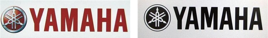 微妙に違うのが分かりますか?赤いほうがヤマハ発動機で黒いほうが音楽関係のヤマハです。