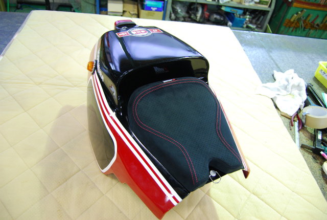 赤のダブルステッチも、カウルのカラーに合っていると思います。
