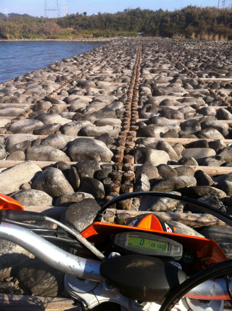 バイクの練習も毎日。と言っても、MXコースを走るわけでもなく、近所の河原を好きなように走っているだけ。