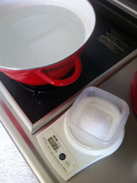 パスタを茹でるときの塩加減も一応計った。この塩加減がとても重要でさらに茹で方も詳しく書いてあったので忠実に守ることにする。