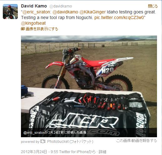 ラリー中、ツイッター見たらJCRのライダー/デヴィッドカモ選手のこんなつぶやきが!!!テストしてるじゃん。うれしいね。