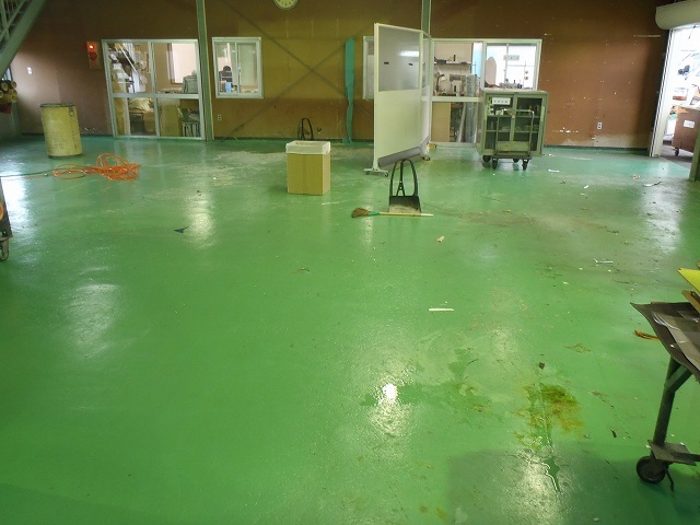 作業場内の棚や作業台などを全て移動させます。