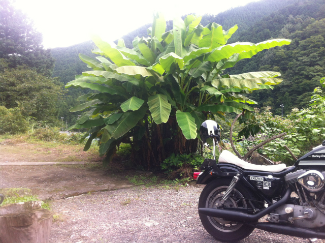 2年半前に小指の先ほどの芽を移植したバナナが、あっという間に手がつけられないほどの大きさになってしまってねぇ・・・。