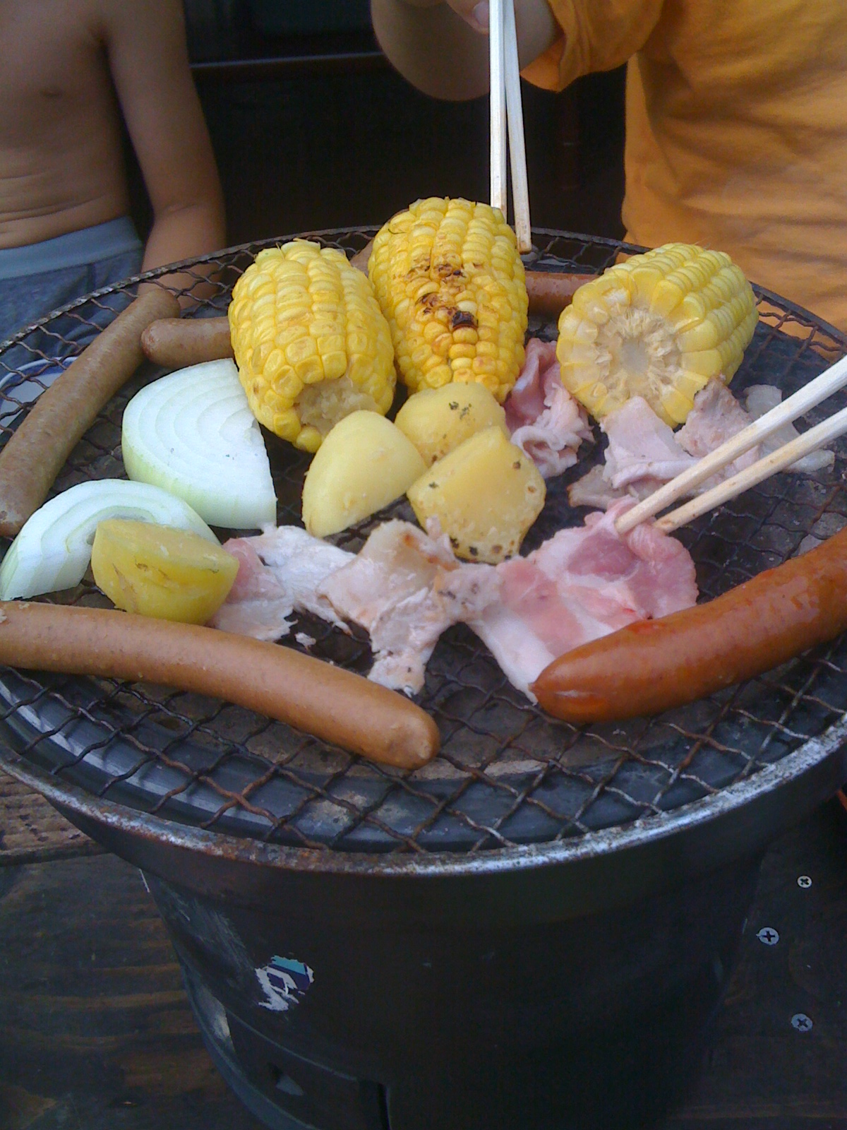 食べ方は色々。写真のように、皮ごと七輪に乗せて皮が真っ黒に焦げて、中の一枚が焦げる前に皮を少し開いてバターと醤油をたらして、また閉じて少し焼く。蒸し焼きになってバターと醤油が全体にいきわたり美味いんです。