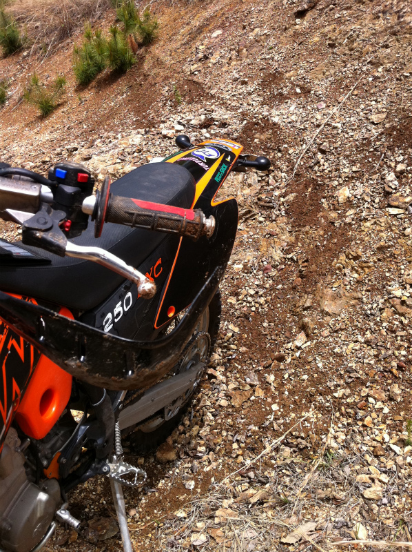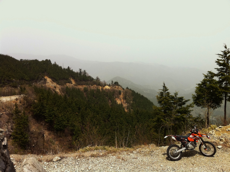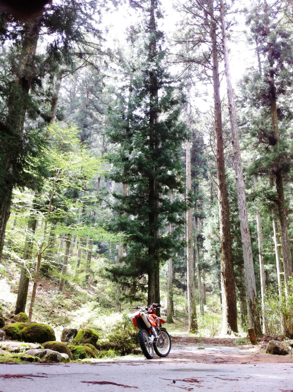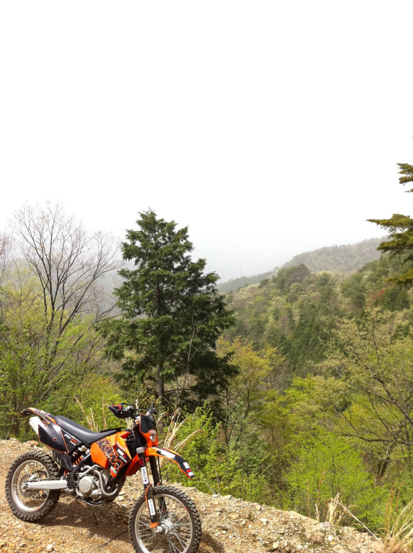 雨の中のツーリングで終わってしまう連休もなんなので、よく晴れた日に近くの山に向かってKTMを走らせてきました。久しぶりの林道です。自宅からぐるっと80km程度のループコースを走ってきました。