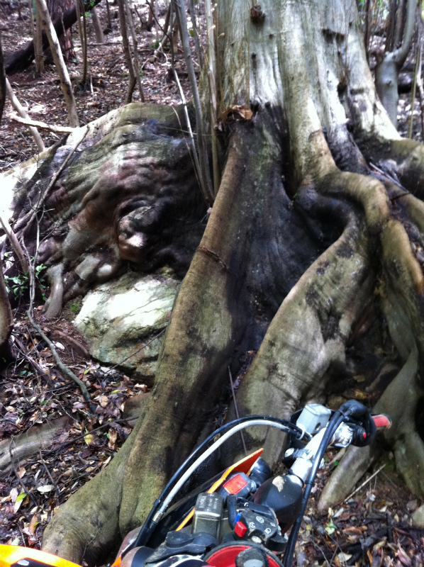 いつものことなんだけど、途中気になる脇道があればちょっと寄り道なんです。いい道見つけると嬉しいんですよね。入って見ると大きな岩を抱えた木がありました。つぶらじいと言う木ですね。この木の根っこの形が好きです。この道はここで行き止まり。