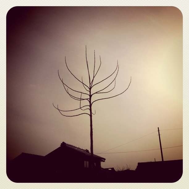投稿日: 16/04/201116/04/2011 投稿者: noguchi気になる木 よそ見してばかりいると言うか、とにかく目に付く物が気になることが多いです。どーでもいいことが大半ですが、ごく稀に発見があったりして楽しいです。まぁ神経質も言いますか・・・・ さて、これは近所の木 木の高さは6-7m。全体に細いし、この細いながらも尖った感じの枝が素敵です。枝分かれしない枝がかっこいいです。全ての枝が1本で、幹からシュッって出てますね。 木の名前は分かりません。もう直ぐ大きな葉っぱをつけるはずなんですけどね。