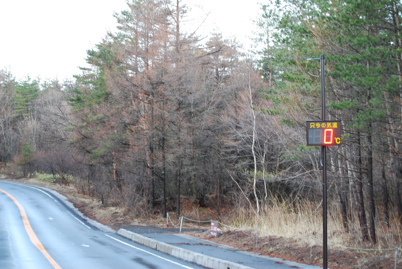 気温は0度。道の横にはまだ雪が残っているところもあります。しかし、前日の雨はすっかり上がって素晴らしい青空が広がってます。