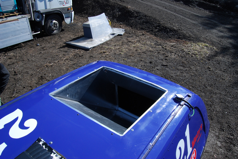 中にはこんな改造をしているチームも。リアにラジエターがついています。他のチームも色々と改造をしていて、軽自動車と言えど本気のレースです。