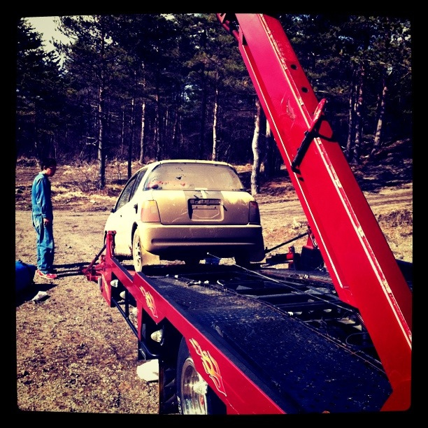 食べ終わった頃に、まだ交代時間ではないのにピットインしてくるトゥデイ号。ドライバーいわく「もう水温計無視して走っていたけど、パワーがどんどん落ちてくるから・・」って、それってそろそろエンジンが終了な感じだよね。水を補充するがどんどん入っていく。完全に空っぽだった。オマケにセルモーターも回らなくなってしまった。水も補充し、止まるまで走れ!と言うことでコースイン。エンジンはみんなに押してもらっての押し掛け。