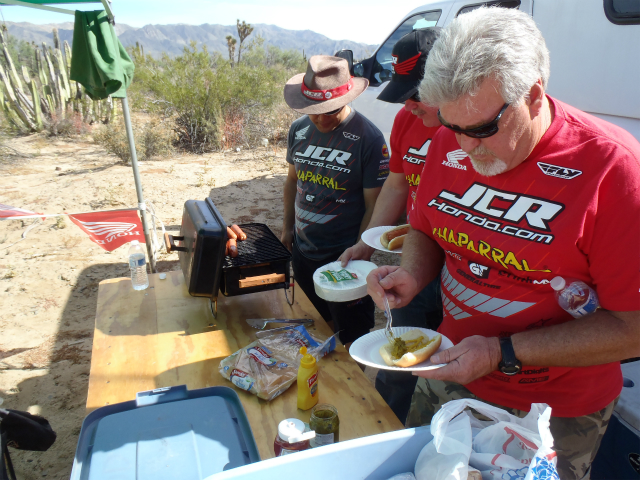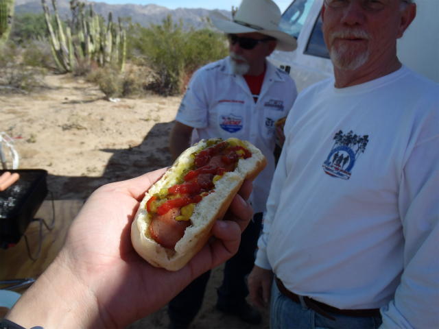 ホットドッグはピットでも作ってました。一緒に食べようって貰って食べた。コーラとホットドッグとサボテンと乾いた土地!美味くないわけがないです。