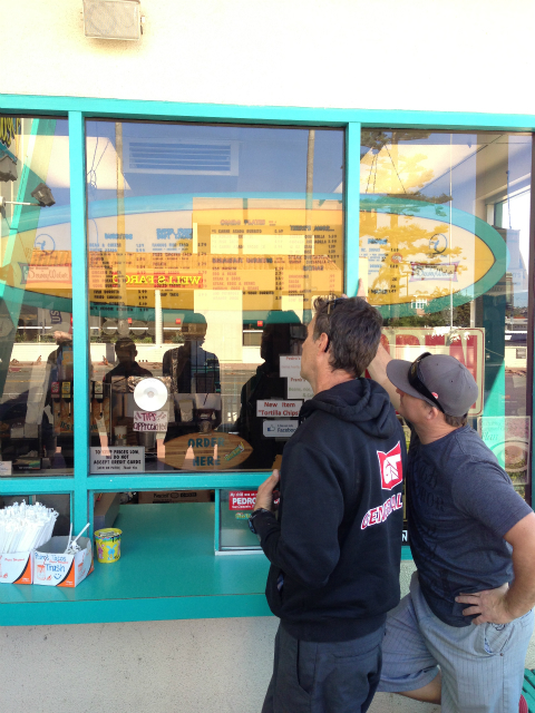 初タコスは、ジョニーにおごってもらっちゃった。「何タコスにする?」って聞かれてもわかんないので、お勧めお願い!って頼んだら結構でかいのが2つも来てね・・(^^;)
