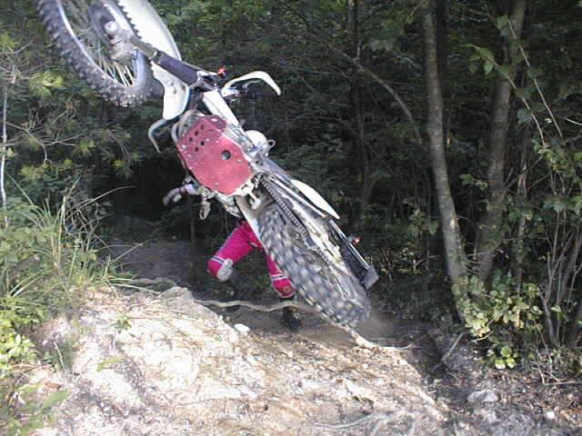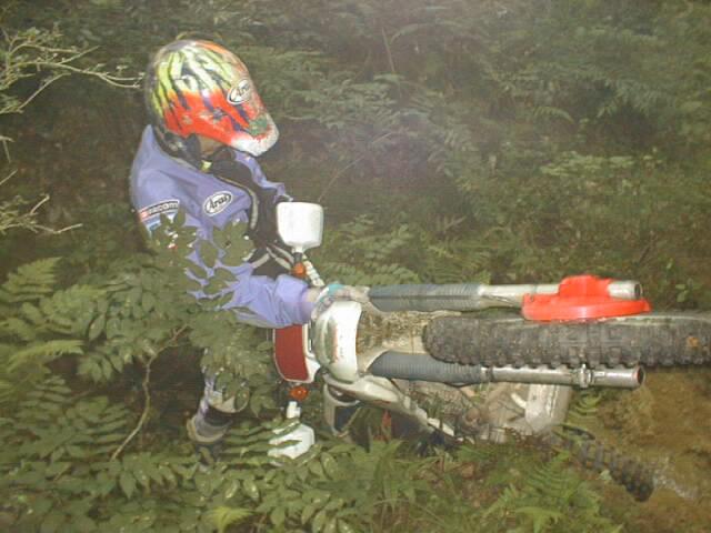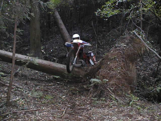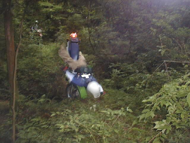 この彼も「こんな溝、楽勝っすよ!」って言うので、カメラ構えてたらこの絵が撮れた。溝の手前でフロントアップどころか、アクセル開けたまま突っ込んで行ったなぁ。ブレーキランプが点いているところがポイント。たいした怪我をしなかったのもよかった。