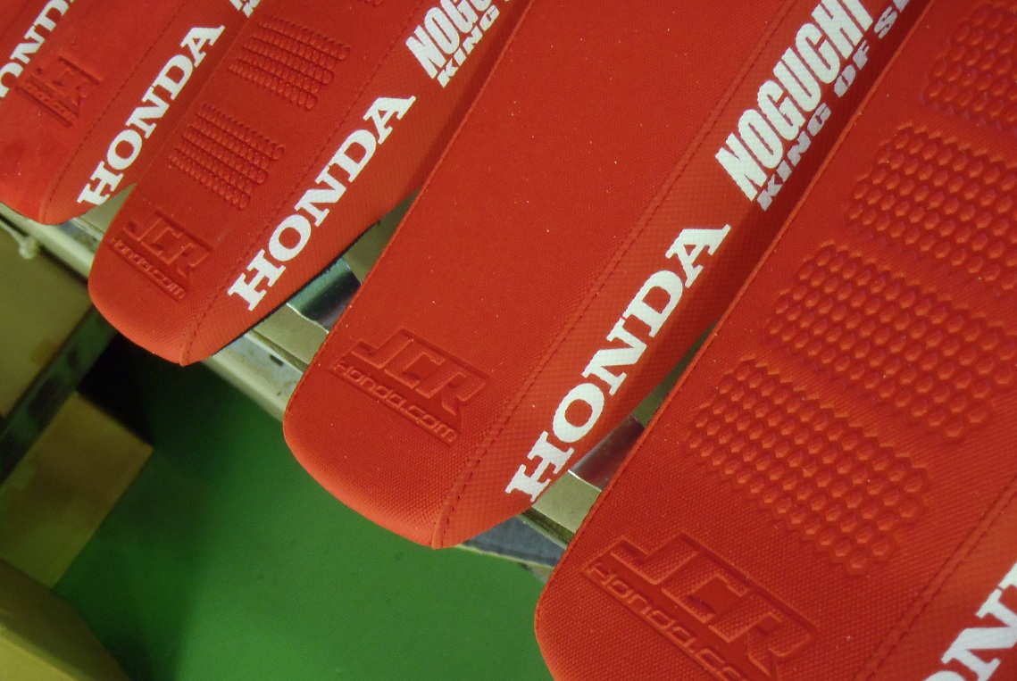 今回はバハ1000の前に走る長時間のレースと言うことで、実験的なシートも含めて数種類のシートをJCRへ送った。前回のバハ500で出た要望を踏まえてより滑らないシートをというところに重点を置き、座面やサイド部分へ何種類かのエンボス模様を付けた。