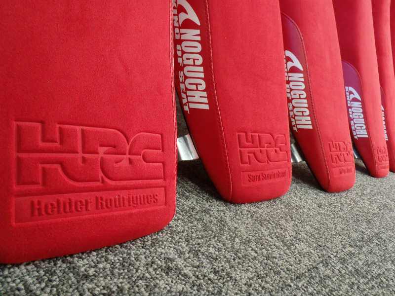 各ライダーの名前もシートエンドにしっかりエンボスマーキングしました。
