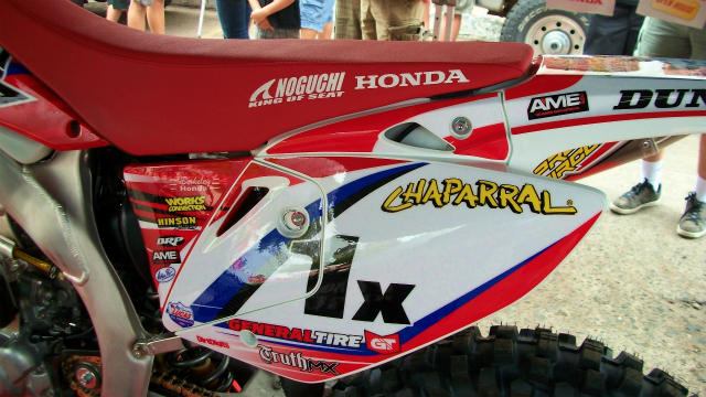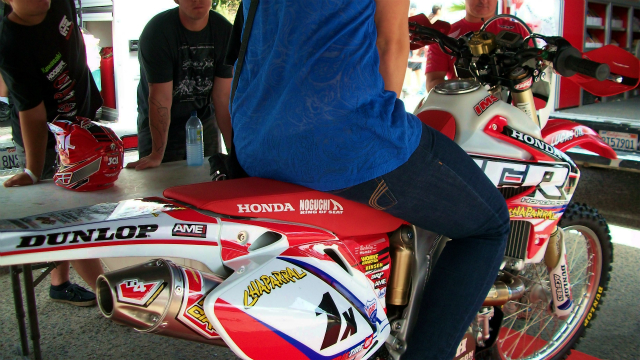 まだ余韻に浸ってる状態です。何度もJCR/HONDAのCRF450Xに取り付いたシートを見てジワジワとこみ上げてくるものがあります。あのスーパースター、ジョニーキャンベルのチームに野口マークがあるわけですから。
