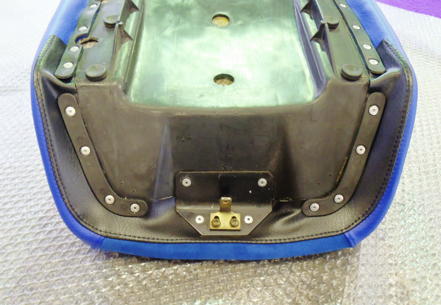 投稿日: 01/09/201101/09/2011 投稿者: noguchiBMW R100GS BMW R100GSのシート改造依頼は割りと多く、要望もさまざまです。今回はアルカンターラで張替えをしました。サイドはビニールレザーB-05となっています。ロゴペイントやアルカンターラのロゴの取り付けなどは、無料で行っておりますので依頼時にご連絡いただければ対応します。 R100GSの張り込みは写真のように、ブラインドリベットでプレートを固定する方法で行います。 張替は、さまざまなパターンで可能なのでお問い合わせください。