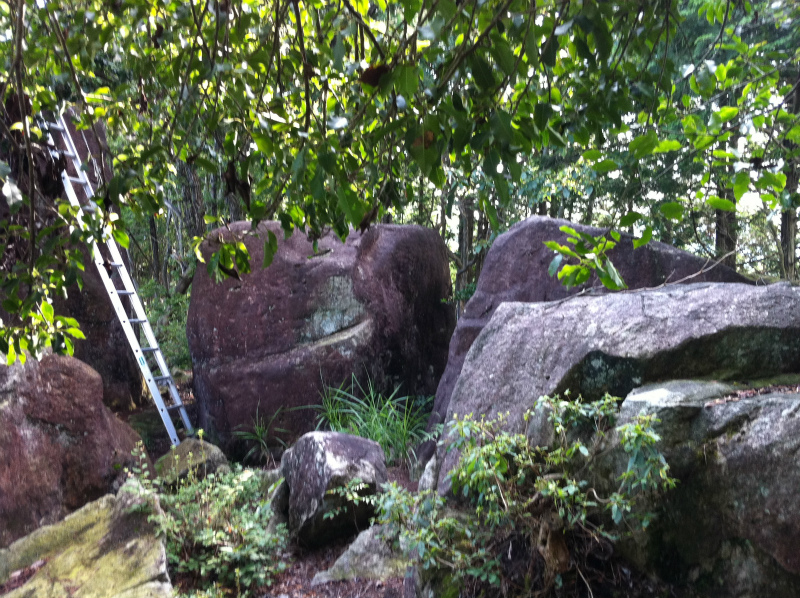 はしごには5.2mと書いてあります。この岩は斜面に立っているので、反対側に回ると岩は7-8mの高さがあります。