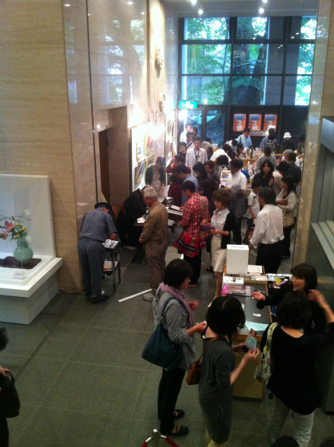ちょっとわかりづらいでしょうが、画面中央で写真集を買った人が並んで一筆書いてもらっていて、警備員のおじさんがドライヤーで、急いで乾かしている光景です。仏壇にも飾るのだろうか。それともこれに何かを期待してありがたく床の間に置いたりするのだろうか。