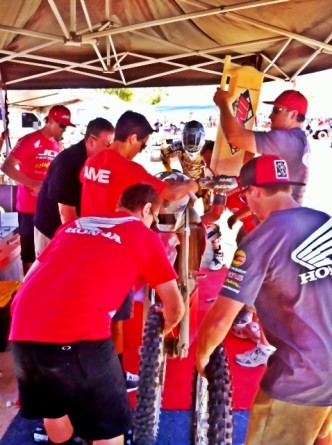 ピットだけじゃなくて、車検場などにもこうして素早くコンパクトに畳める工具巻は重宝されたそうです。各国から集まったHRCのメカニックからも「イイネッ」ってメッセージ をもらいました。