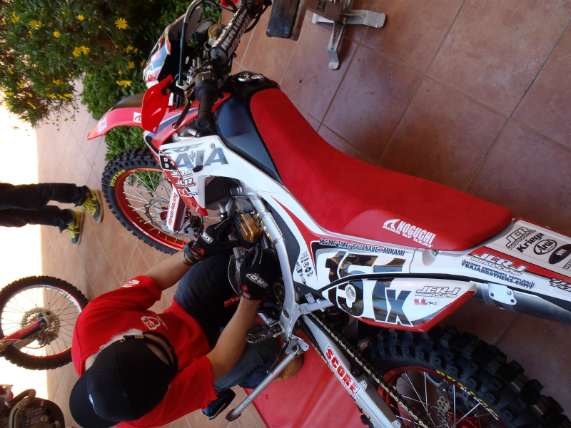 CRFのシートは少し盛るだけで横からの絵がぐっとレーサーっぽくなりますね。