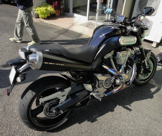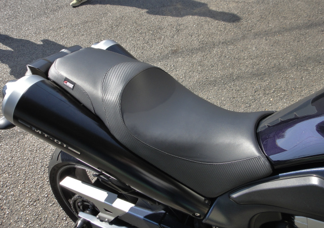 YAMAHA MT-01のシートの張替と、中身の改造をされたお客様がバイクに乗って来ました。